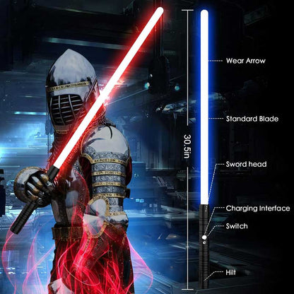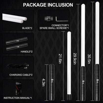 【2 In 1 Light Saber】You can easily link 2 light sabers into 1 longer lightsaber by the built-in connector. You just need to unscrew the tail of one of the lightsabers and link another light saber