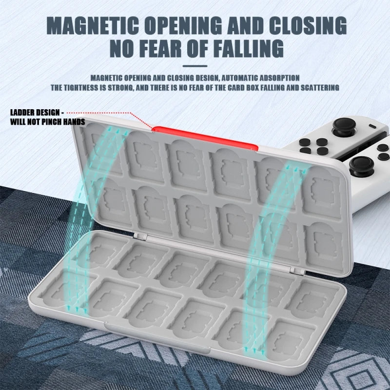 The Game Card Case for Nintendo Switch is designed to securely store your game cards and memory cards. It features 24 game card slots and supports TF memory cards, making it the perfect accessory for Switch gamers. The case offers good protection with its hard shell and soft silicone inner for added safety. The 3D pattern design adds a stylish touch, while the magnetic open/close switch ensures easy access to your cards.
