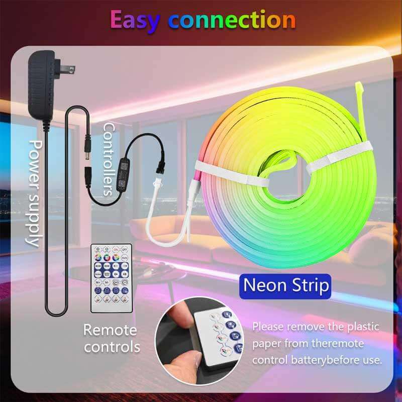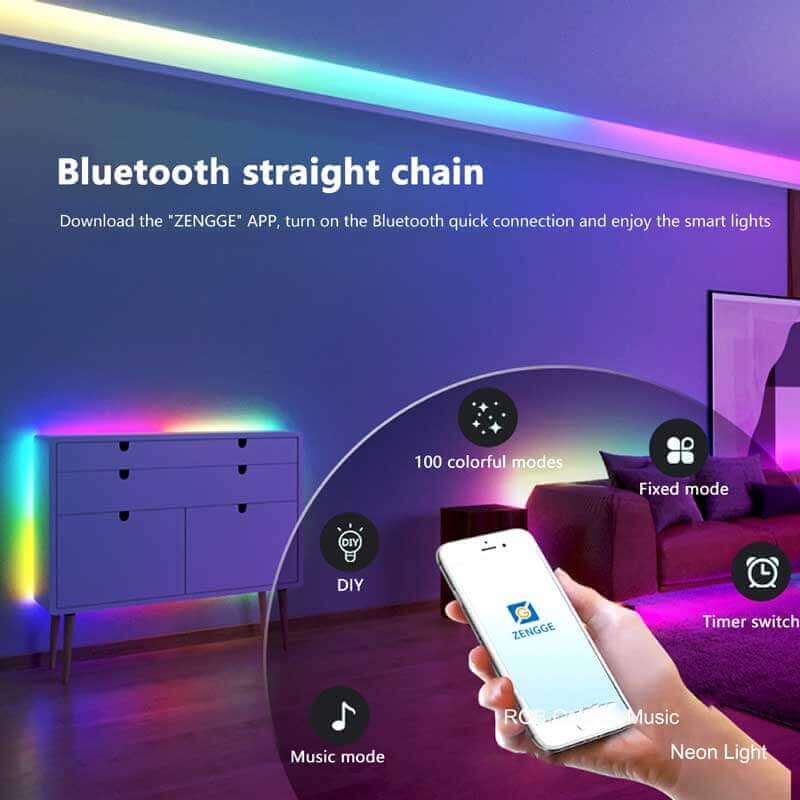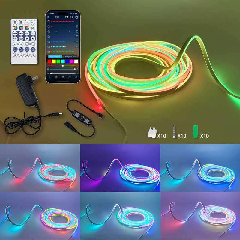 Innovative RGBIC Lighting: Featuring 60 LED/M 5M/roll, max power of 12v 24w. Offers dynamic RGBIC color control via APP-IR remote, enhancing lighting experience.