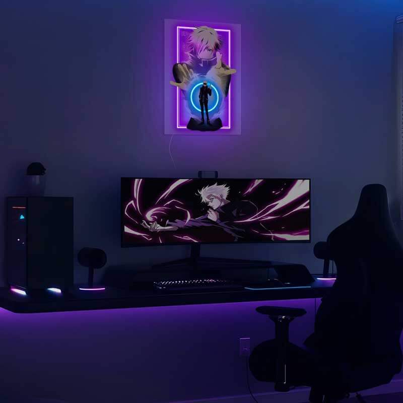 5v LED Night Light Neon Wall Light - Gojo Satoru: This sleek and modern LED wall light features a power-efficient design, perfect for enhancing the ambiance of gaming rooms and entertainment spaces.