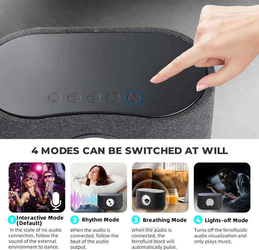 Magnetic Fluid Visualization: This unique speaker visualizes sound in mesmerizing, ever-changing patterns, making it not just an audio device but a stunning decorative piece for any space. Whether in your living room or office, it’s sure to capture attention.