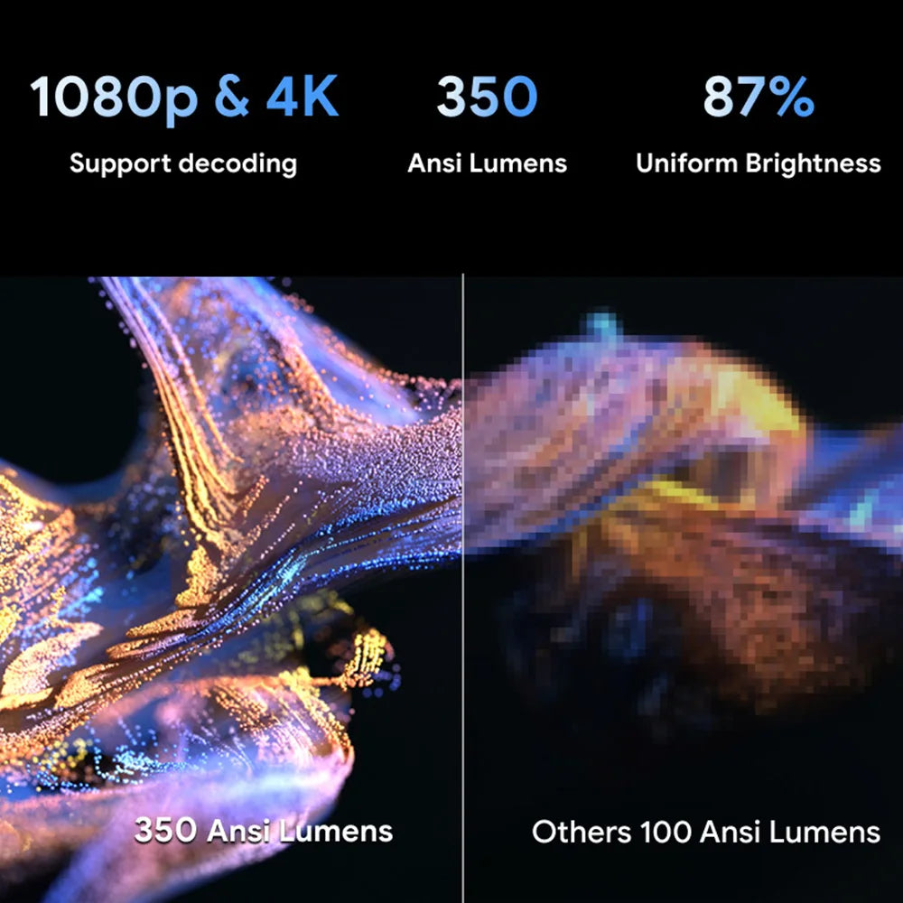 - Exceptional Visuals: Featuring native 720P resolution with 350 ANSI lumens brightness, the FreeONE supports 1080P and 4K decoding, ensuring vibrant colors and stunning clarity.
